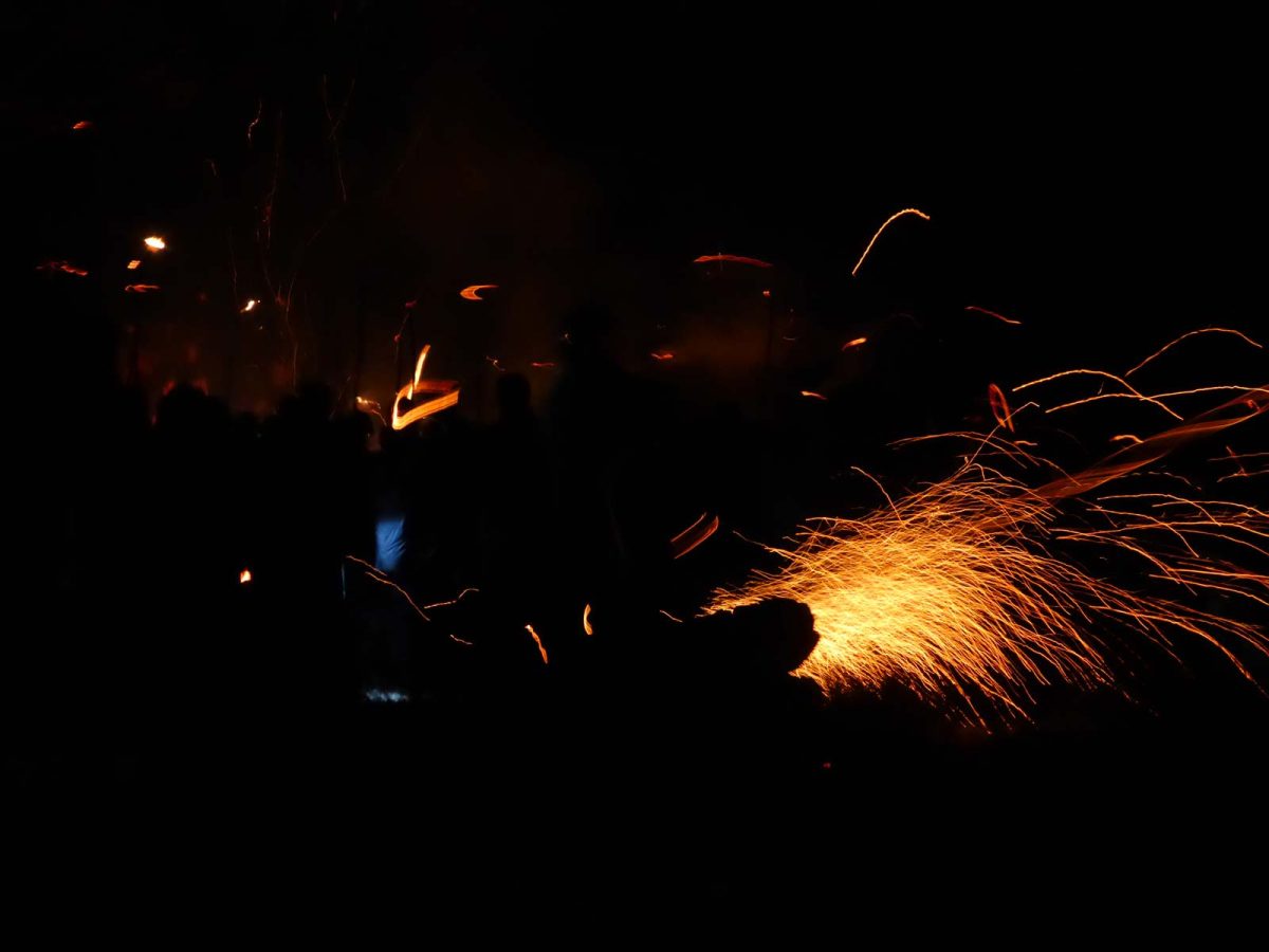 Le Schieweschlawe est une coutume très ancienne à laquelle s’adonnent les villageois chaque hiver. Plusieurs semaines avant le carnaval, les préparatifs commencent. Jeunes gens, associations, villageois et conseillers municipaux ramassent du bois mort dans la forêt communale et le déposent dans une clairière qui domine le village (le Schiewebarri). Là, sept grandes pierres plates sont dressées de manière à former autant de tremplins dirigés vers la vallée. Le jour venu, un grand feu est allumé dès l’après-midi. À la tombée de la nuit, le ciel rougeoyant annonce le début des festivités. Les villageois se rendent à travers la forêt au Schiewebarri, en empruntant la rue de l’église ou le sentier du Monnesepel. Les lanceurs portent en bandoulière des chapelets de disques. À la main, ils tiennent des bâtons flexibles de noisetier ou de châtaignier de 1,50 m de long environ. Les disques en bois de hêtre d’un diamètre de 10 à 12 cm et percés au centre d’un trou de 1 cm, ont été achetés chez le menuisier du village. Mais il y a quelques années encore, chaque famille taillait ses propres disques dans des rondelles de bois de hêtres dont on amincissait les bords à coups de hachette. Le trou du centre était percé soit à la tarière, soit au fer rouge. Les disques, fixés solidement sur les bâtons, sont ensuite placés dans l’énorme bûcher. Le bord aminci s’enflamme. Le lanceur brandit ensuite le disque rougeoyant en le faisant tournoyer au-dessus de sa tête. Il s’approche d’une de ces tables de pierre. Après plusieurs moulinets, le disque est frappé avec dextérité contre la pierre : il rebondit en lançant des étincelles et le voilà parti dans l’air !