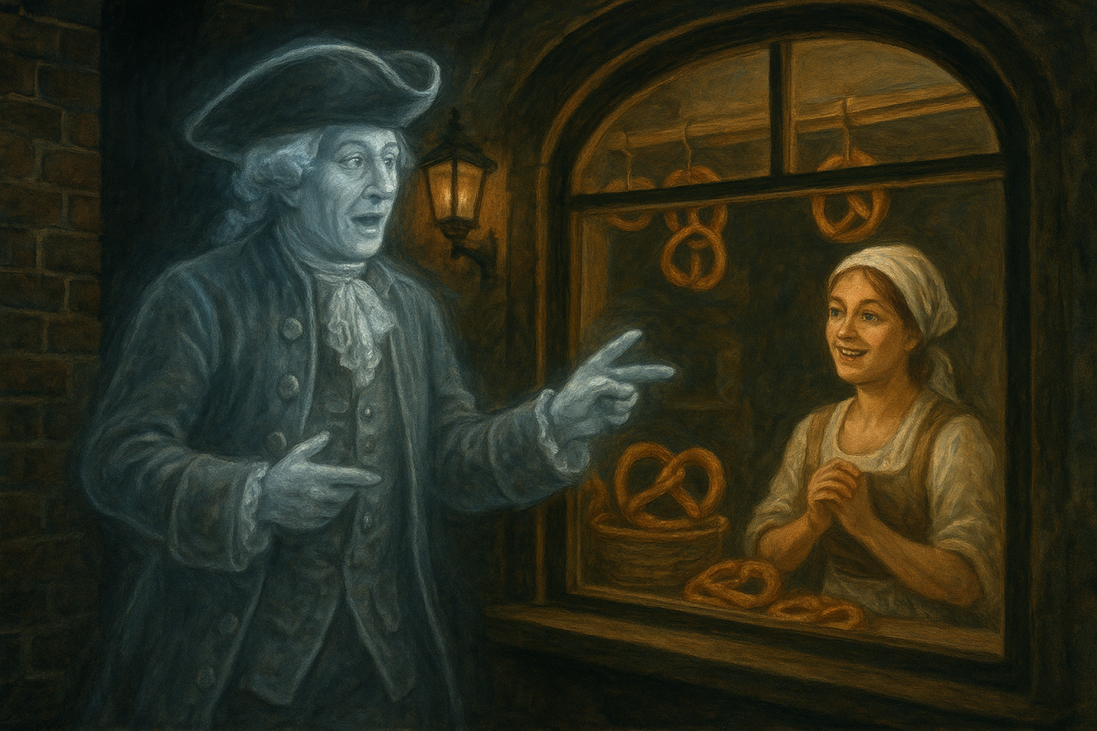 Le fantôme du baron Ludwig von Sinclair, seigneur d'Oberbronn de 1710 à 1738, décide de sortir de son village. Happé par le tourbillon de la vie moderne il se réfugie à la Fabrique à Bretzels, où il découvre l'histoire de la bretzel, qu'il agrémente de commentaires bien à lui.