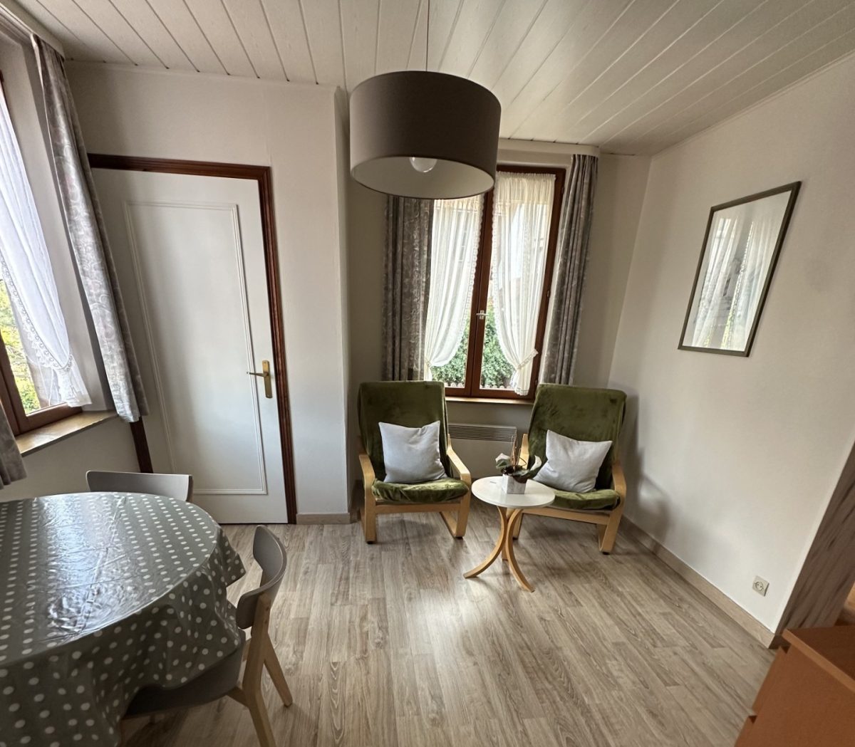 Meublé dans résidence calme. Proche commerces et centre-ville. L'appartement se trouve au-dessus du restaurant le Caveau de l’Étable.