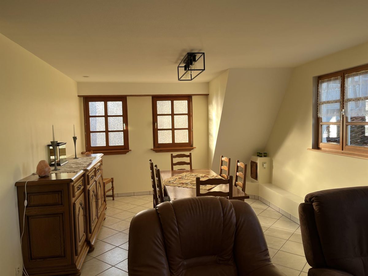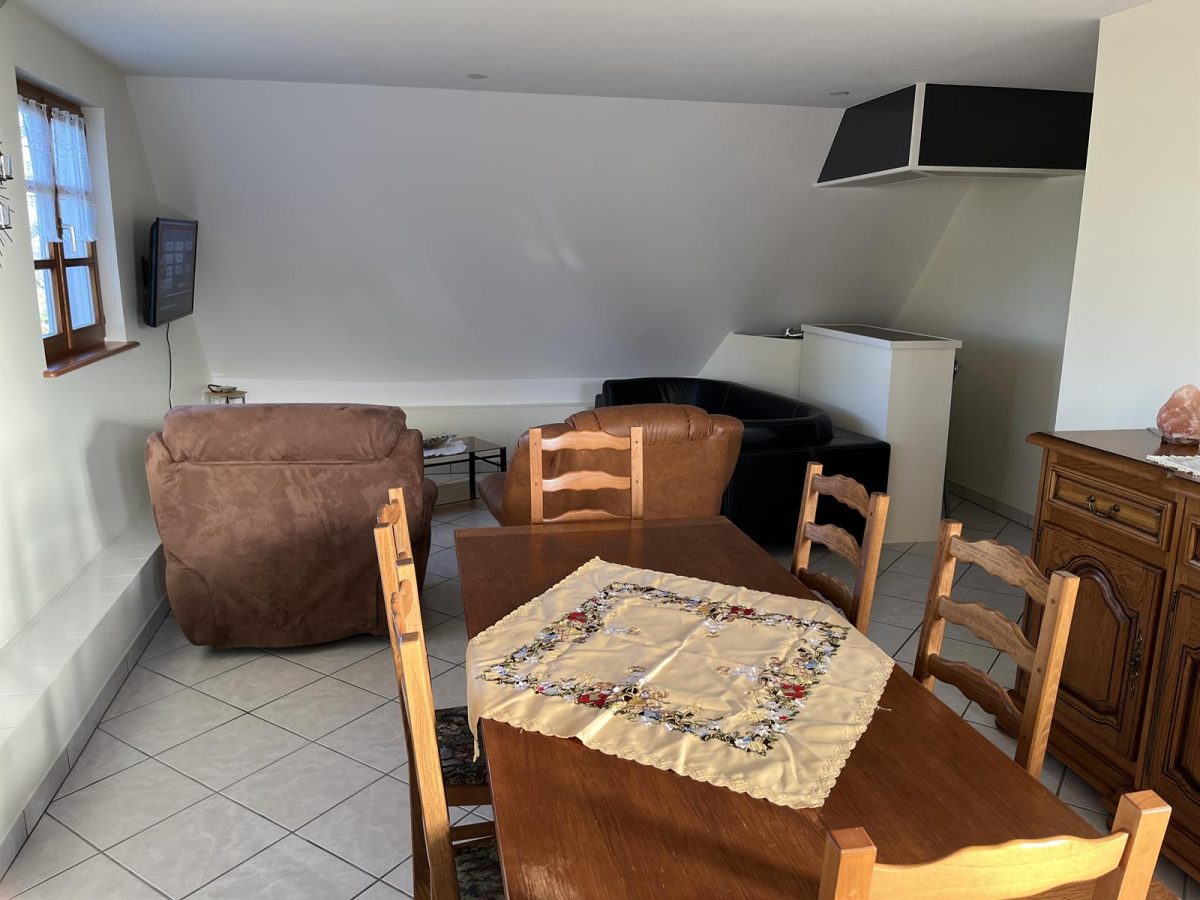 Appartement indépendant entièrement rénové à l’étage, spacieux et lumineux. Trois chambres dont deux mansardées, cuisine tout équipée – idéal pour des vacances en famille ou entre amis.