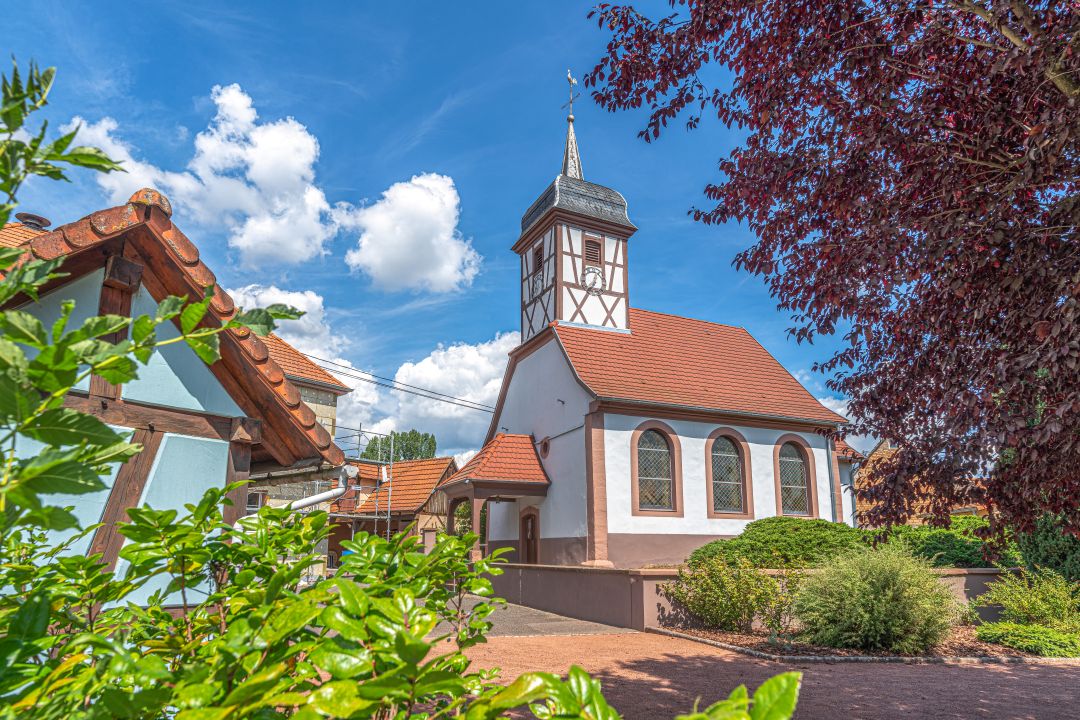 Petit bourg de caractère alsacien, Uttenhoffen abrite en son centre une église réputée comme étant la plus petite église d’Alsace à colombages. Ce temple protestant dont le chœur est daté du début du XVIème siècle est d’un aspect peu conventionnel qui vaut le détour.