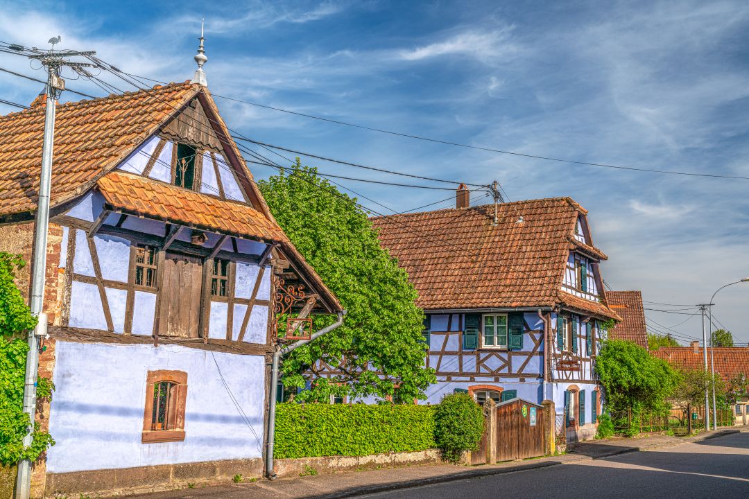 Le long des ruelles généreusement fleuries, le passant pourra admirer quelques fermes à pans de bois peintes au bleu de Hanau, et autour desquelles s’articulent de bucoliques jardins, comme ceux de la Ferme Bleue. Un lieu hors du temps qui mérite qu’on s’y attarde.
