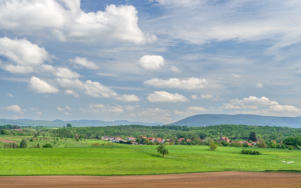 Boucle de promenade au départ de la ferme Klein de Schirlenhof, balisée triangle rouge. Un itinéraire calme entre champs et forêts, parfait pour une sortie nature.