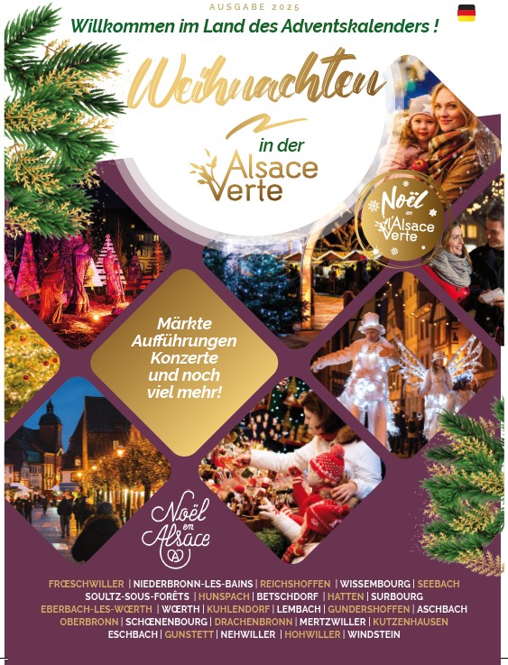 Pour ne rien manquer des évènements de Noël, téléchargez notre Agenda de Noël ! Concerts, spectacles, rencontres avec les personnages de l’Avent, Marchés de Noël, illuminations,… Prenez part à l’ambiance de Noël en Alsace Verte